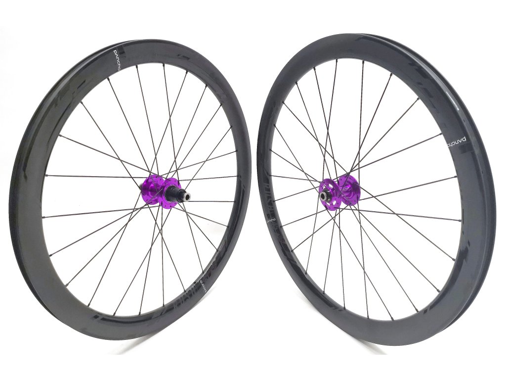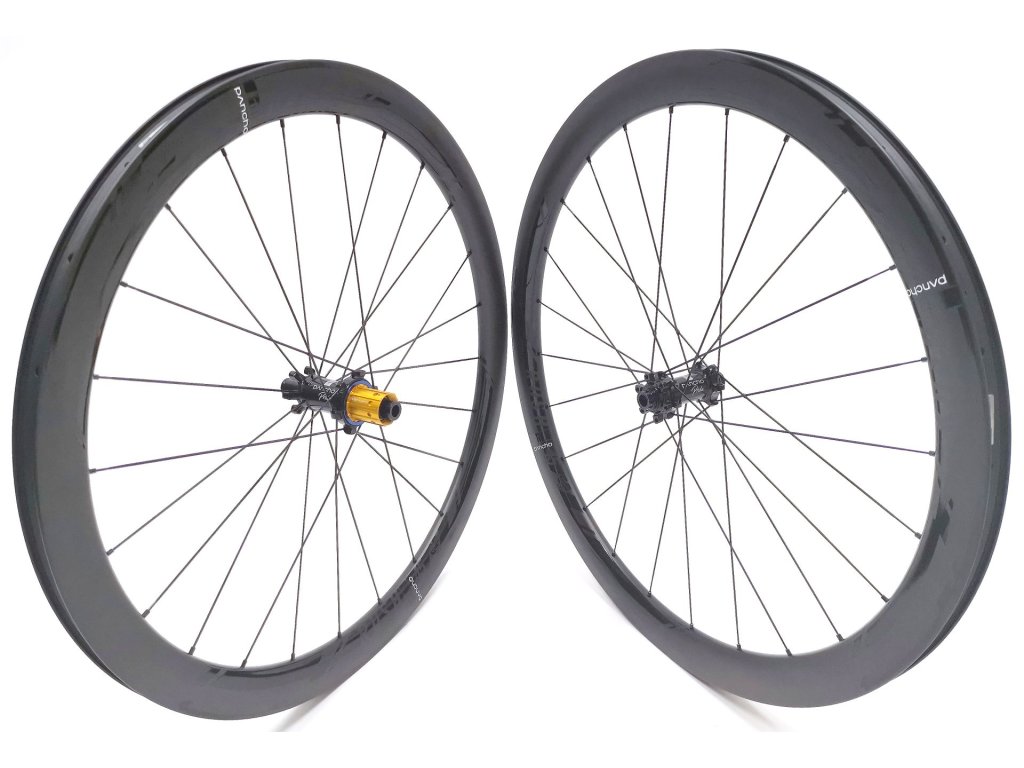Karbonová plášťová disková zapletená kola PANCHOWHEELS RUSH 45 GSF s naší nabídkou nábojů, zapletené dráty Sapim CX Ray.