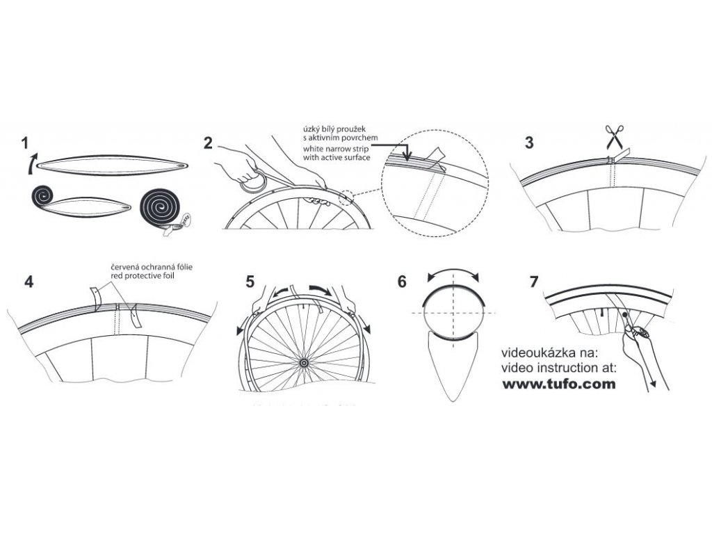 Speciální oboustranná lepící páska pro instalaci TUFO galusek na karbonové nebo hliníkové ráfky. Tato páska se velmi liší od všech podobných výrobků na trhu. Práce s páskou je jednodušší a rychlejší než s lepidlem. Aktivní povrch pásky umožňuje dokonalé přilepení galusky k ráfku již po několika metrech jízdy. Žádné zašpiněné ráfky, galusky nebo ruce od lepidla, žádné škodlivé výpary. Díky červené separační pásce je vycentrování galusky velmi snadné.