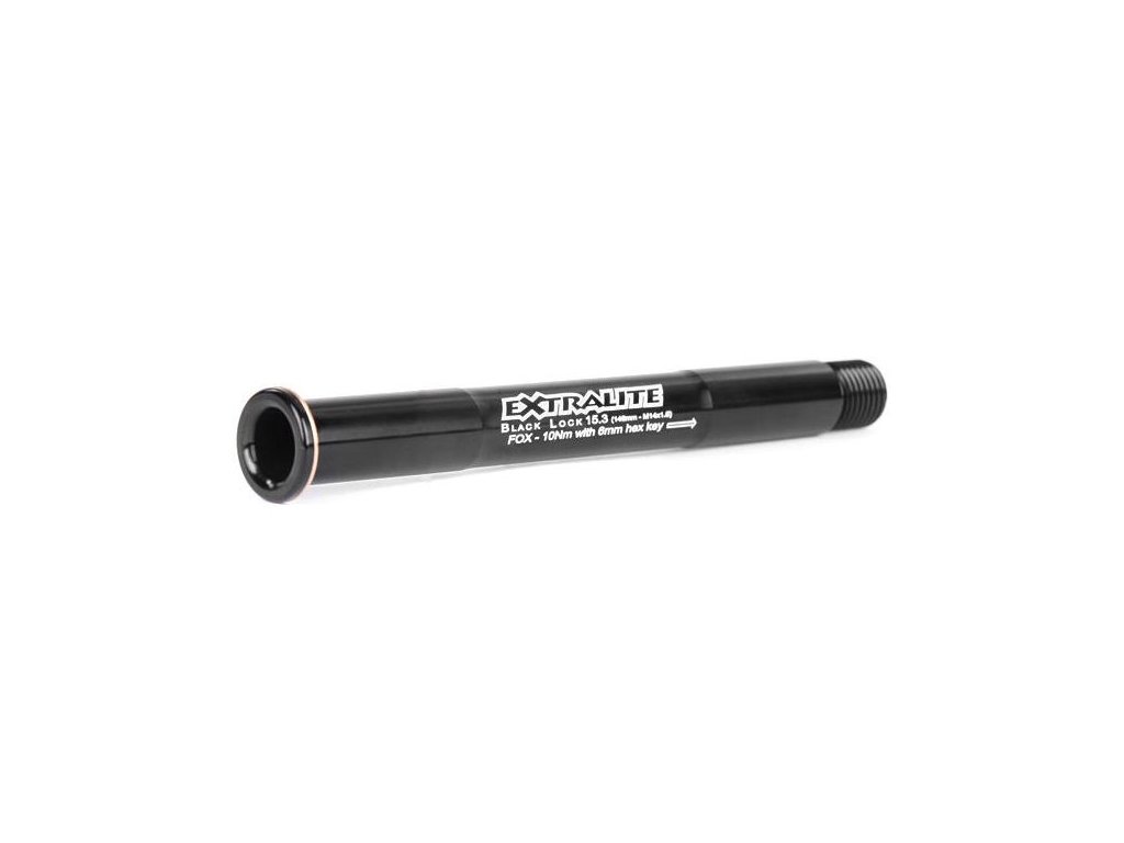 Přední pevná osa EXTRALITE Thru Axle Black Lock 15.3B, QR15 pro FOX BOOST, 28g