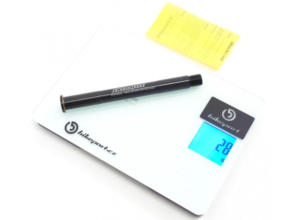 Velmi lehká přední pevná osa EXTRALITE Thru Axle Black Lock 15.3B, QR15 pro vidlice FOX BOOST