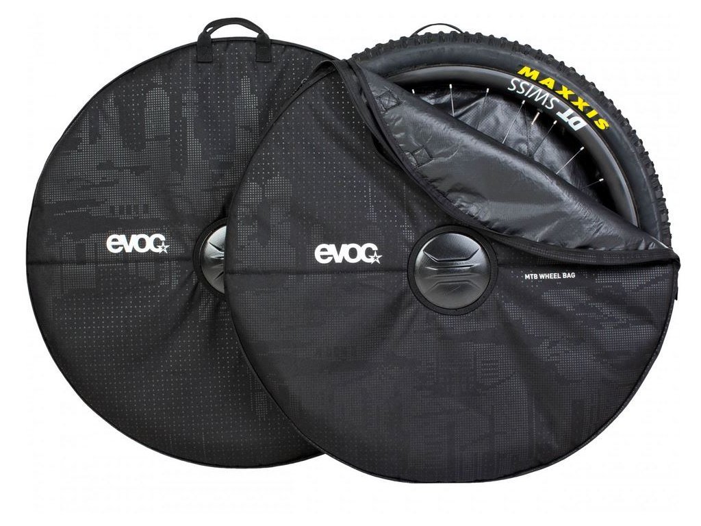 Stylové přepravní vaky na MTB výplety EVOC MTB WHEEL BAG, sada 2 vaků pro libovolné MTB výplety až do velikosti 29" včetně obutí.