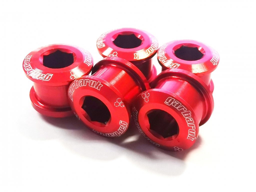 Sada červených šroubů do převodníků Garbaruk Chainring Bolts Set, M8 x 0.75mm.