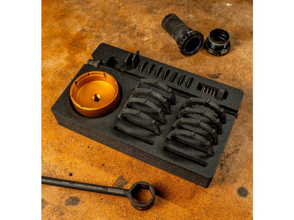 Systém nástrčných klíčů Pro BB je dokonalým řešením pro stále rostoucí počet závitových „standardů“ pro středové složení, které zaplavují trh. Tento inovativní a ekonomický systém, na který je čeká schválení patentu, se snadno přizpůsobí současným i budoucím potřebám nástrojů pro středové složení.