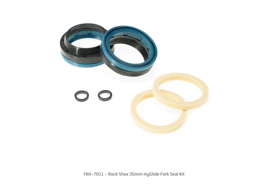 Tato sada těsnění obsahuje integrované horní/dolní olejové těsnění HyGlide, pěnové kroužky a přítlačné podložky pro odpružené vidlice Rock Shox 35mm